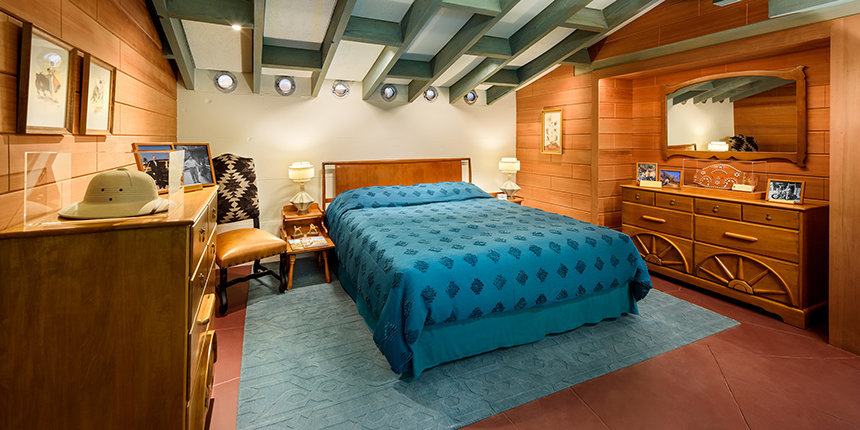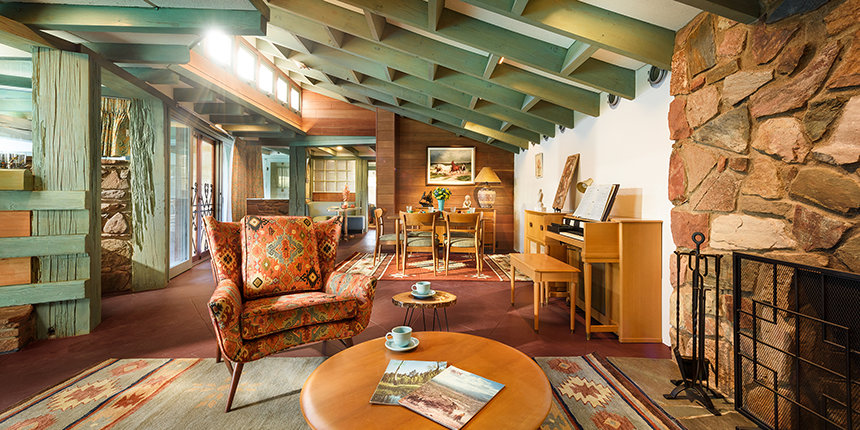 His Osborn Road property, a striking example of Prairie-style architecture, had been built in 1948, set amidst what was then a vast citrus orchard, covering an area that has since developed into suburban Phoenix. In fact, when Mr. Hubbard first arrived in 1954, the site still featured neat rows of some forty navel orange trees from that original orchard.